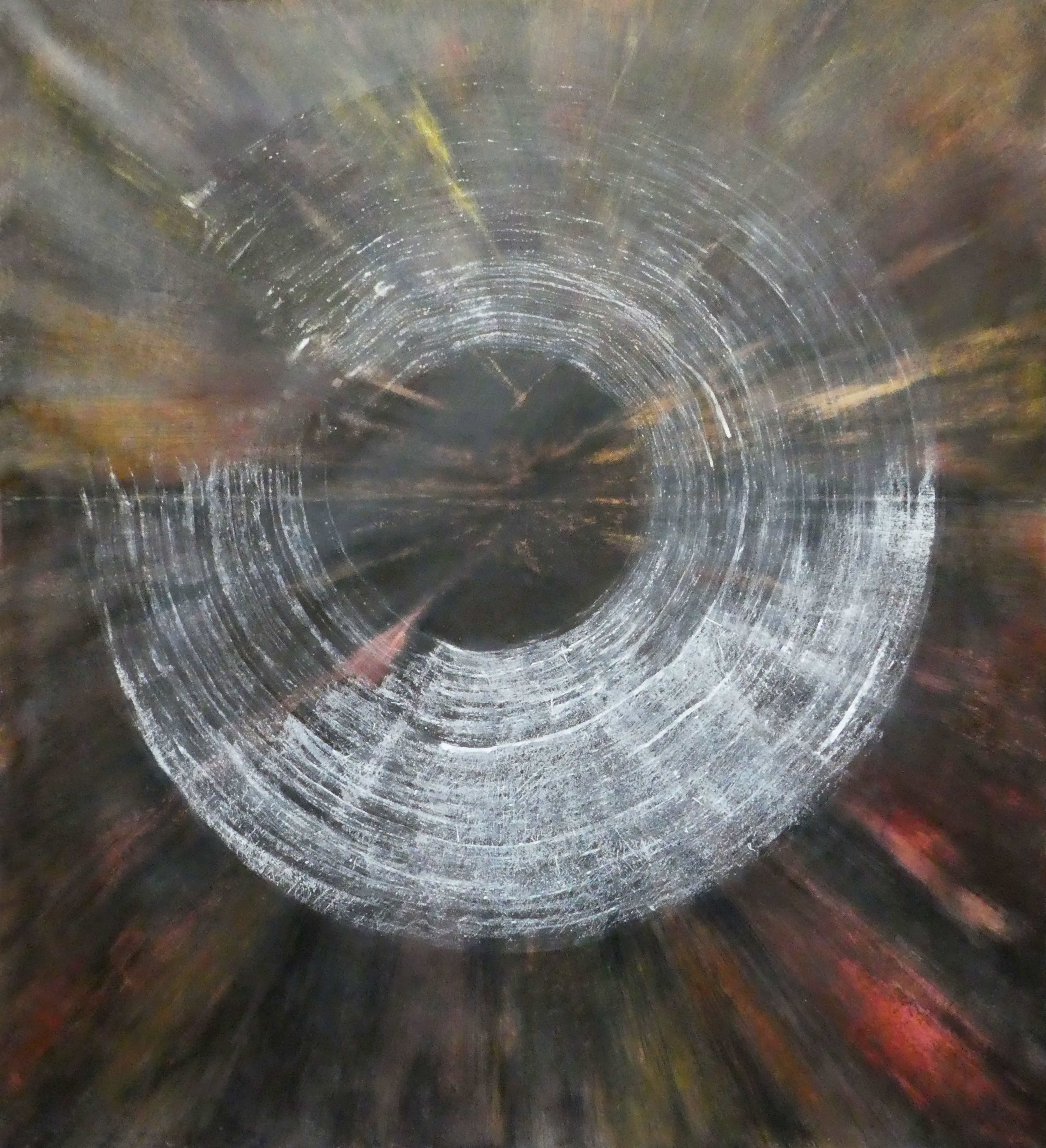 Petit à petit, elle retrouvera le goût de la matière, et développera un travail sur papier qu’elle situe elle-même entre dessin et peinture.