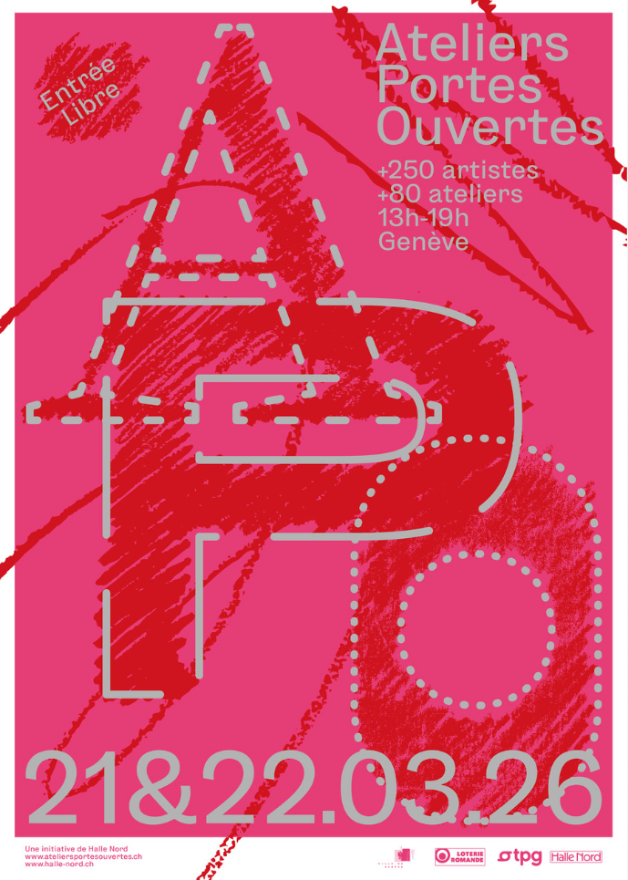 Halle Nord vous convie à la septième édition des « Ateliers Portes Ouvertes ». Créé en 2013 sous le nom d’« Atelier ouvre-toi », cet évènement biennal propose aux artistes genevois·e·x·s d’ouvrir leur atelier au public le temps d’un week-end. Pour l’édition 2026, ce sont quelque 250 participant·e·x·s actif·ve·x·s dans la région et dans toutes les disciplines qui vous ouvrent leurs portes.