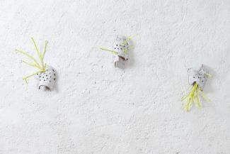 WA[tc][s]H ME NOW est une variation autour d’un jeu de cache-cache, de dévoilement, de regards libérés et protecteurs, de gestes propres et d’hygiène des mains, de limites entre le dehors et le dedans, l’intime et le public, de matières molles qui ont le pouvoir de se pétrifier, de textiles durcis, de dispositifs de protection du sol, et d’oiseaux porteurs de messages, qui eux aussi parfois habitent les airs.