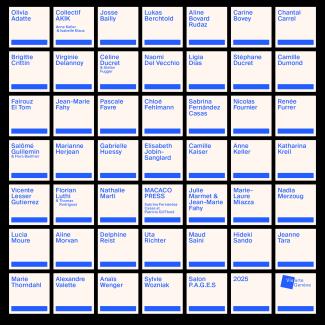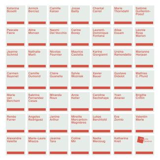 Sonja Aeschlimann, Isabelle Althaus, Edith S. Ambühl, Brigitte Baserga-Vogt, Sandra Becker, Barbara Beckmann, Daniela Benz, Janeth Berrettini, Gina Bolle, Sabine Böni Bogo, laura noëmi borel, Carine Bovey, brueckner / stoecklin, Tanja Bykova, Valeria Caflisch, Barbara Cahn, Lucinda Cameron, Nora Dal Cero, Indrani Das Schmid, Susann Dubs, Helen Eugster, Frauenzeug Huldi & Vogel, Nadja Fries, Cynthia Fleischmann, Caroline Fuss, Sandra Gaffuri, Myriam Gauderon, Andrea Gerber, Susanne Germann, Mahalia Taje Giotto, Viviana González Méndez, Lisa Hegner, Monika Heiniger, Birgit Herzberg-Jochum, Emily Hildebrand, Irina Horsia, Anna Jaun, Liv Jecklin, Maria Kaegi, Eva Kindlimann, Catherine Kirchhoff, Monica Klingler, Susann Klossek, Kollektiv siehe_oben!, Simone Kornfeld, Neringa Korsake, Xénia Laffely, Priska Leutenegger, Lee Lichtenstein, Esther Löffel, Michelle Maddox, Mara Mars, Tabea Martin, Angela Marzullo, Anoushka Matus, Gitta Masciadri-Kübler, Michaela Medea, Fabienne Meier, Marianne Mettler, Michèle Mettler, Ameneh Moayedi, Linn Molineaux, Heike Müller, N’Dorah, Marion Nitsch, Vitoria Pinto, Ana Marija Pinto, Annkathrin Pöpel, Sarah Richani, Tanya Marisa Rivera, Ursina Gabriela Roesch, Mona Rosa, Marika Rosenius, Pauline Rousseau, Katharina Rozran-Steuri, Béa K. Sartorius, Sultana Savvi, Nadia Sawas, Michèle Scaramuzza, Annika Schick, Ilka Schneider, Catherin Schoeberl, Rosemary Singleton Rauber, Sarah Valérie Steiner, Irene Stelzer, Barbara Sterkman, Marion Strunk, Franziska Teufel, Honys Torres, Vera Renata Veronesi, Corinne Ann Véya, Martina Villiger, Anaïs Virg, Monica von Rosen, Ana Vujic, Alexandra Weidmann, Weiland / Dietz, Rosi Weiss, Marianne Wuest, Ying Xu, Arian Zeller, Margaret Zimmermann MAZIM, Jutta Znidar